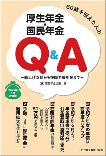 キーワード:60歳を迎えた人の厚生年金・国民年金Q&A繰上げ支給から在職老齢年金まで2025年6月改訂版服部年金企画 ビジネス書 ろくじつさいおむかえたひとのこうせいねんきん ロクジツサイオムカエタヒトノコウセイネンキン はつとり/ねんきん/きかく ハツトリ/ネンキン/キカク