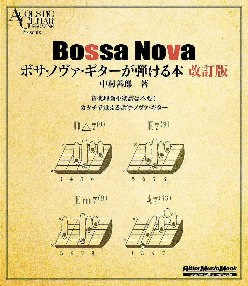 2005年初版『ボサ・ノヴァ・ギターが弾ける本』の改訂版。"日本のジョアン・ジルベルト"とも評されるアーティスト、中村善郎によるボサ・ノヴァ・ギター教則本で、五線譜は一切登場せず、コードの押さえ方が一瞬でわかるダイアグラムとリズム譜だけで構成。平易に語りかける文章と大きな文字でサクサクと読み進められる。小難しい理論は一切ナシで、楽しくボサ・ノヴァ体験ができることが売り。スキャット(鼻歌)も入るので弾き語りにも対応。初版はCD付きだったが、改訂版ではストリーミング&ダウンロード形式に変更。改定要素は、この教則のもとになった中村善郎が本場ブラジルで学んだ体験談/グルーヴの本質を収録。