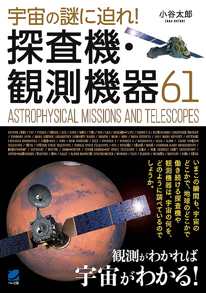 宇宙物理の最前線の探査機・観測機器を61機紹介し、それらの装置がどのような謎を解くために開発されたのか、その科学的背景を解説していきます。