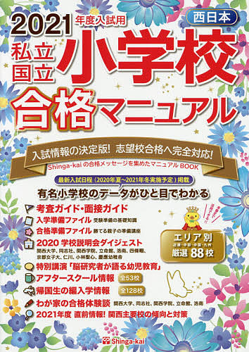 入試情報の決定版!志望校合格へ完全対応!Shinga‐kaiの合格メッセージを集めたマニュアルBOOK。最新入試日程(2020年夏〜2021年冬実施予定)掲載。有名小学校のデータがひと目でわかる。
