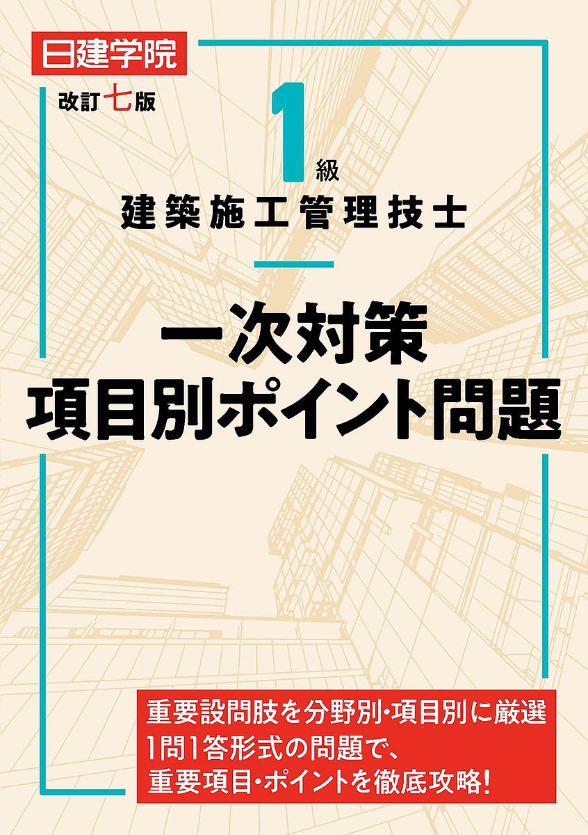 キーワード:1級建築施工管理技士一次対策項目別ポイント問題日建学院教材研究会 いつきゆうけんちくせこうかんりぎしいちじたいさく イツキユウケンチクセコウカンリギシイチジタイサク につけん/がくいん ニツケン/ガクイン