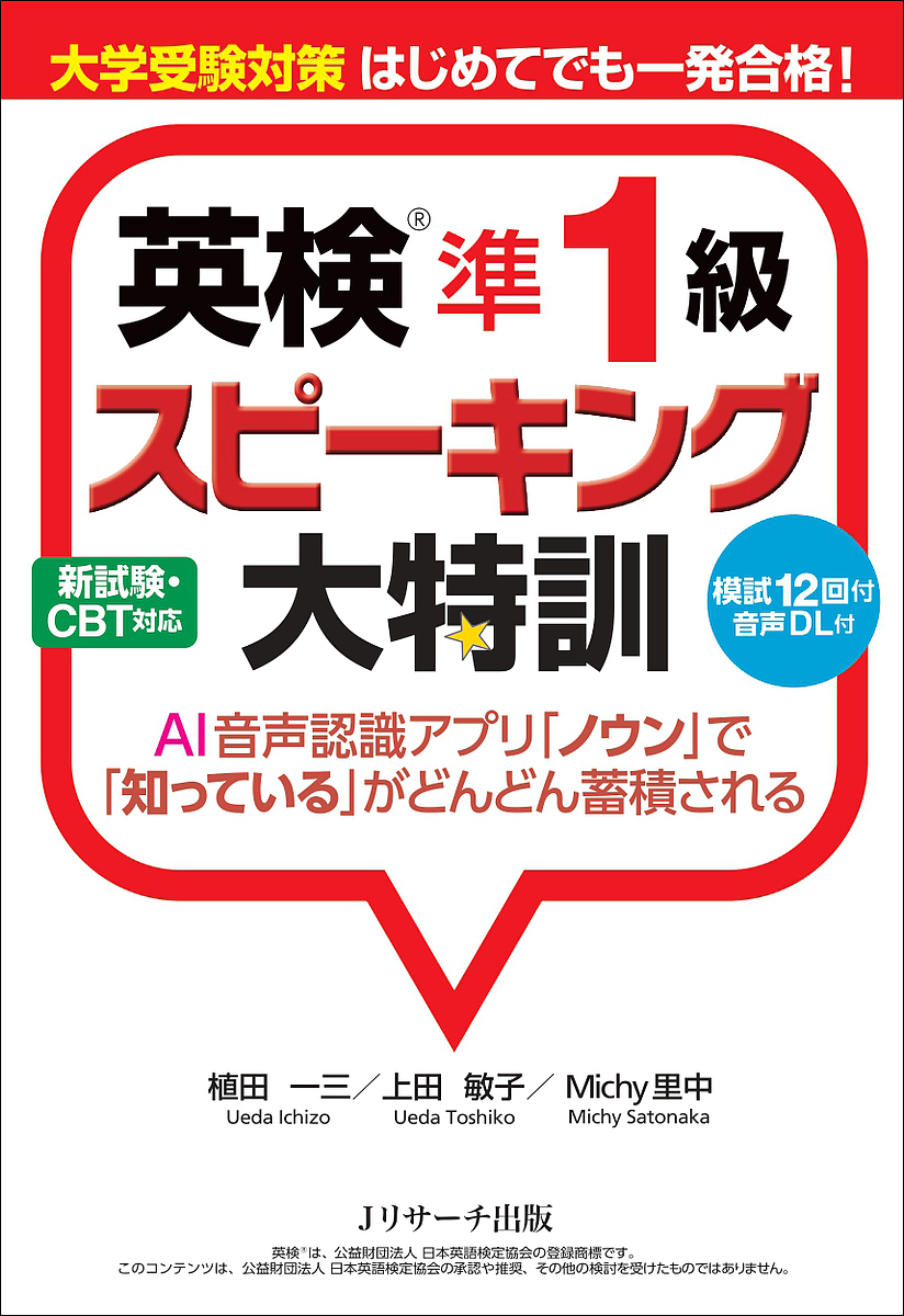 英検準1級のスピーキングテスト(面接)に絞り込んで特訓できる、本格派のスピーキング対策書。はじめての受験でも合格できる面接力が身につく!設問ごとの対策になる「日⇒英短文練習」からはじまり、過去問データ分析で厳選された頻出トピックの質疑応答練習、本番さながらの模試と、段階的にトレーニングできるから、英語スピーキングが苦手な人でも安心。模試は12回分収録。さらに発音判定機能付きのAI音声認識アプリ「ノウン」で本文の問題を実践的に復習できる!