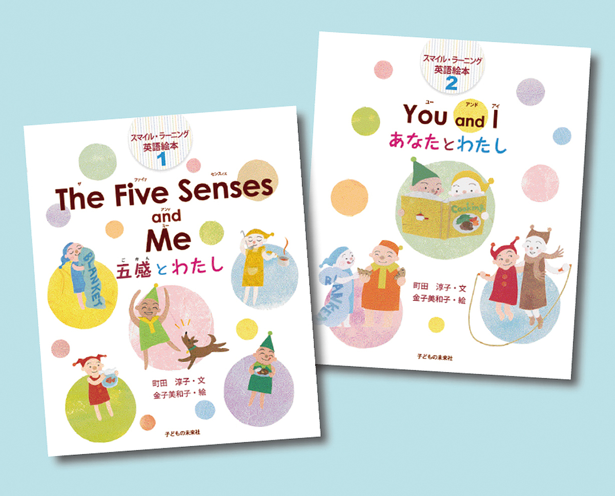 1巻の「The Five Senses and Me」(五感とわたし)は「見る」「聞く」「におう」「「味わう」「触れる」の五感を使って英語と出会い、読み進めるうちに「わたし」を発見していきます。2巻の「You and I」(あなたとわたし)は「あなた(人)」とのつながりを見つけ、自分の思いを英語で表現していきます。この絵本では子どもが参加しながら発見し、学んでいきます。どの子も自然に英語を使った表現がしたくなり、楽しく英語が身につきます。発音の仕方、関連単語表、解説付。