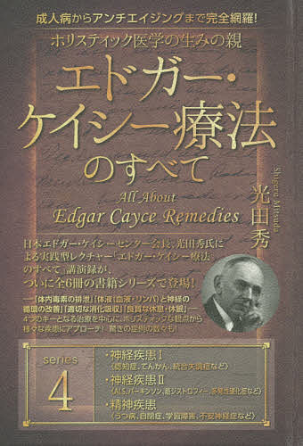 シリーズ4回目は、認知症、統合失調症などの神経疾患、ALS、パーキンソン病などの神経系の難病、うつ病、自閉症などの精神疾患についてです。現代医学においても対処が難しいこれらの神経・精神系の病にケイシー療法はどう取り組むのか?食事療法、オイルマッサージなどの肉体的療法に加えて、精神的、さらにはカルマ、憑依霊などの霊的アプローチによる独自のホリスティックな治療法を詳説。また、バイオレットレイ、インピーダンス、ウェットセルなどの波動・電気機器による目覚ましい治療事例や使用方法もご紹介します。