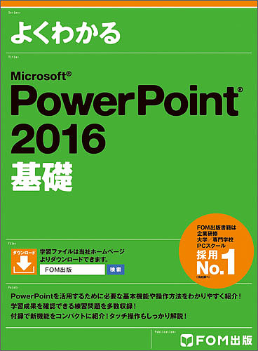 初めてPowerPointをお使いになる方を対象に、基本操作から表やグラフ、図形、画像などを取り入れた表現力のあるプレゼンテーション資料の作成までをわかりやすく解説しています。本書は、Officeの操作が初心者の方でもPowerPointの基本機能をしっかり押さえ、短時間で効率よく学習できるテキストです。