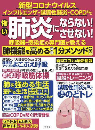 キーワード:怖い肺炎にならない!させない!呼吸器・感染症の専門医が教える肺機能を高める最新1分メソッド大全新型コロナウイルスインフルエンザ・誤嚥性肺炎・COPDなど 美容 こわいはいえんにならないさせないこきゆうきかんせん コワイハイエンニナラナイサセナイコキユウキカンセン