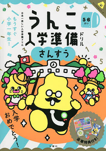 大人気幼児用うんこドリルで小学校の「入学準備」をサポート!うんこで楽しみながら小学校入学までに必要な算数力を身につけることができるドリル。小学校入学へのワクワク感・期待感を膨らませつつ、小学校の学習内容を先取りできる内容で、学習の習慣付けも期待できます。数字ポスター、おはじき&数字カード、組み立てられるうんこ時計、計算カード、図形カード、小学ドリルのお試し冊子の特典付き!