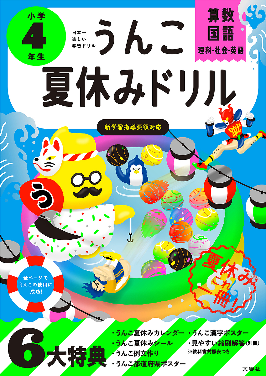 キーワード:うんこ夏休みドリル算数・国語・理科・社会・英語小学4年生 うんこなつやすみどりる4 ウンコナツヤスミドリル4