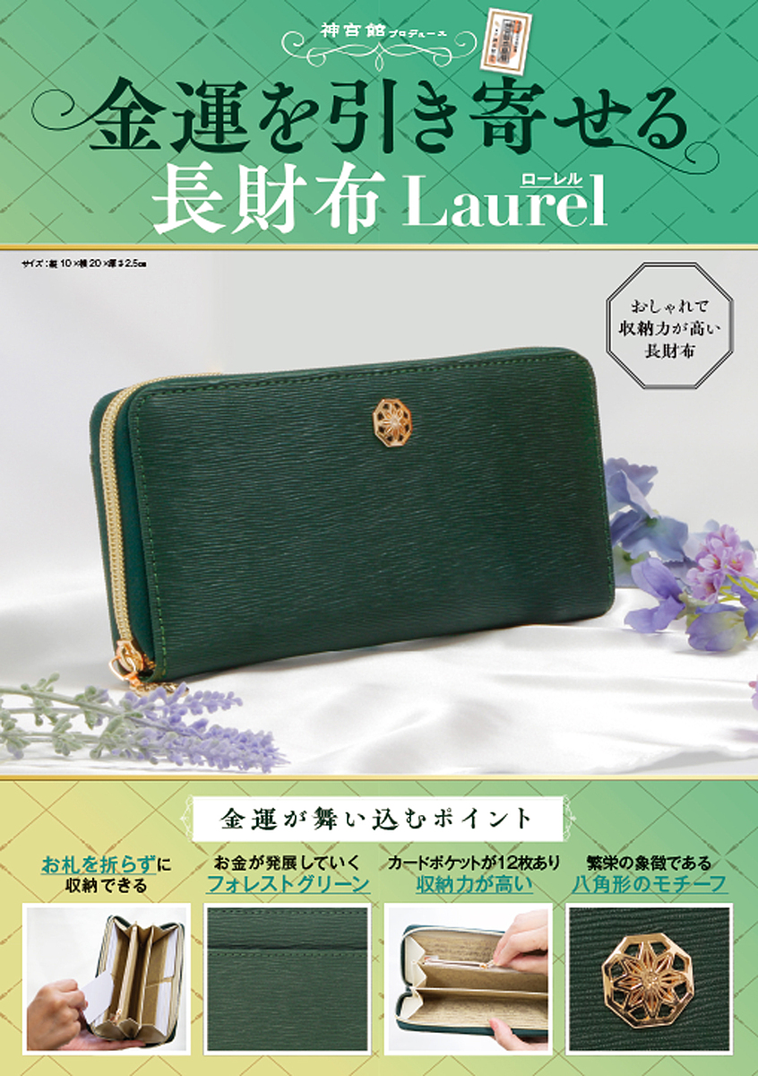 金運を引き寄せる長財布Laurelは、名前の通り金運アップのポイントが満載!