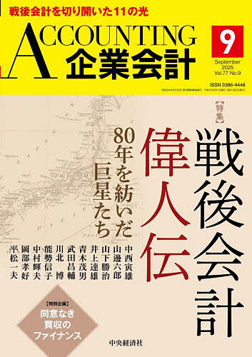 【特集】戦後会計偉人伝 80年を紡いだ巨星たち解題 戦後80年間における日本会計の変化と進展 工藤栄一郎中西寅雄――原価計算基準の始祖 尾畑 裕山邊六郎――直接原価計算の開拓者 高橋 賢山下勝治――収益費用アプローチの確立 桜井久勝井上達雄――簿記会計教育の草分け 石川鉄郎青木茂男――予算研究の泰斗 大塚宗春武田昌輔――企業会計と税務会計の架け橋 成道秀雄川北 博――国際派公認会計士の先鋒 橋本 尚能勢信子――社会会計に挑んだ研究者 津村怜花中村輝夫――研究者を凌駕していた企業会計人 上總康行岡部孝好――愉快にして厳格,実証会計学の伝道者 鈴木一水平松一夫――世界のProf. Hiramatsu 阪 智香【特別企画】同意なき買収のファイナンス「同意なき買収」は何を変えたのか?:動機,株主価値,コーポレート・アクションへの影響 川本真哉同意なき買収の成否とその後:株価・業績データにみる影響分析 鈴木一功【OPINION】ビームスのバランスト・スコアカード――機能別組織における戦略マップの活用 妹尾剛好・納富隼平【FRONT PAGE】Scope Eyeキャンセルカルチャーは行き過ぎではないか 松井茂記Current of the Times電波望遠鏡から生まれるイノベーション 平松正顕【連載】経理パーソンの仕事に役立つ法律知識第2話 賃貸借契約書 平木太生研究はどう評価されるのか?――加速する「数」の競争第3回 RAE:実績に基づく,外部からの研究評価導入 佐藤 翔法が照らす会計の深淵第42回 損益計算書13 弥永真生会計時評AI時代における会計プロフェッショナルの役割と専門職研究 松原沙織Salon de Critique情報開示の量に適正水準はあるか?:投資者の処理能力と情報過多 塚原 慎【COLOR SECTION】三角波日頃から・ともに・スマートに防災をOUTSIDEROEの向上は長期戦に 前田昌孝経理・財務最前線会計が,共創の言葉になる 北川裕憲参謀人材の活躍が企業を救う第9回 成功する参謀,失敗する参謀――違いはどこにあるのか 吉本行広会計人のOFFTIME…他