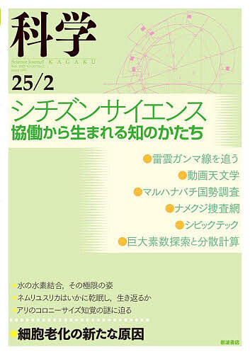 【特集】シチズンサイエンス――協働から生まれる知のかたちみんなでつくる科学――シチズンサイエンスによる新しい研究のかたち……一方井祐子雷雲プロジェクト――tangible scienceの試み……榎戸輝揚動画天文学が解き明かす未開の太陽系――はやぶさ2次期フライバイターゲット 「トリフネ」形状決定を例に……有松亘シビックテックとシチズンサイエンス……武貞真未GIMPSによる巨大素数探索と分散計算……青木和麻呂地味な生き物と市民科学――「ナメクジ捜査網」……宇高寛子市民科学と学術研究の間の壁を越える――写真を用いた市民参加型調査 「花まるマルハナバチ国勢調査」……大野ゆかり[巻頭エッセイ]市民科学の時代の到来――市民科学を自分事,みんな事に……小堀洋美細胞老化の新たな原因:細胞膜の傷……河野恵子ゴカイの分類学――圧倒的な多様性が生み出す変なやつら……自見直人氷Xとは何か――超高圧中性子回折実験でとらえた水素結合の極限の姿……小松一生アリはコロニーの大きさをいかに知るのか?――自己組織化による群れサイズ知覚……辻和希アニマシー知覚:外見からの認知と動きからの認知のミスマッチ……植田一博ネムリユスリカはどうやってほぼ完全な乾燥を生き抜くのか?……吉田祐貴・黄川田隆洋[連載]言語研究者,ユーラシアを彷徨う7 空と大地が触れ合う大草原――ソロン語……風間伸次郎日常身辺の確率的諸問題12 客観的な確率は存在するのか?……原啓介3.11以後の科学リテラシー145……牧野淳一郎[科学通信]奄美大島から特定外来生物のフイリマングースを根絶――世界最大規模の根絶劇はどのように成し遂げられたのか?……橋本琢磨水中の小さな群体生物コケムシの魅力に迫る……広瀬雅人次号予告表紙デザイン=佐藤篤司