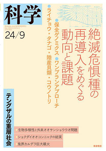 【特集】絶滅危惧種の再導入をめぐる動向と課題絶滅危惧種の“導入”──危機対応としての取り組みと課題……宮下直絶滅危惧種の保全における遺伝情報の役割──基礎から先端研究まで……中濱直之ワンプランアプローチによる絶滅危惧種保全活動──遺伝資源保存の役割……大沼学腸内細菌移植によるライチョウの野生復帰の試み……土田さやか・牛田一成タナゴ類における再導入の現状と課題──ミヤコタナゴ,ゼニタナゴにおける取り組み……諸澤崇裕保全の主流でない,“陸産貝類”の野生復帰への道のり……森英章地域社会におけるコウノトリの野生復帰──住民の受け入れとその将来像……本田裕子再導入を超えて──移住支援,遺伝的支援,脱絶滅……宮下直[巻頭エッセイ]プラネタリウム誕生100周年──機械仕掛けの宇宙から無限の宇宙へ……木村かおるテングザルから紐解く人類社会の進化……松田一希がんとは何か──分子からのアプローチ6……野田亮[連載]人間の言語能力とは何か──生成文法からの問い【番外編3】 〈鼎談〉言語学と機械学習の「共闘」は可能か?(前編)……折田奈甫・窪田悠介・次田瞬ナナメから見る物理学6 世界は3次元か?……村田次郎言語研究者,ユーラシアを彷徨う3 アムール河中流の漁撈民──ナーナイ語の現地調査へ……風間伸次郎日常身辺の確率的諸問題7 どうすればお金持ちになれるのか?……原啓介3.11以後の科学リテラシー140……牧野淳一郎[科学通信]生物多様性の保全と外来種問題──外来オオサンショウウオ問題を例として……西川完途ショクダイオオコンニャクのいのちをつなぐ──世界最大級の「花」をつける絶滅危惧種の結実……堤千絵海底を覆う鬼界カルデラ巨大噴火の噴出物……清水賢・島伸和次号予告表紙デザイン=佐藤篤司