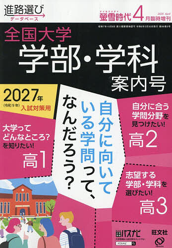 キーワード:螢雪時代4月臨時増刊全国大学学部・学科案内号2026年4月号【螢雪時代増刊】 けいせつじだいぞうかん ケイセツジダイゾウカン