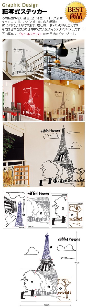 ■商品名:ウォールステッカー エッフェル塔