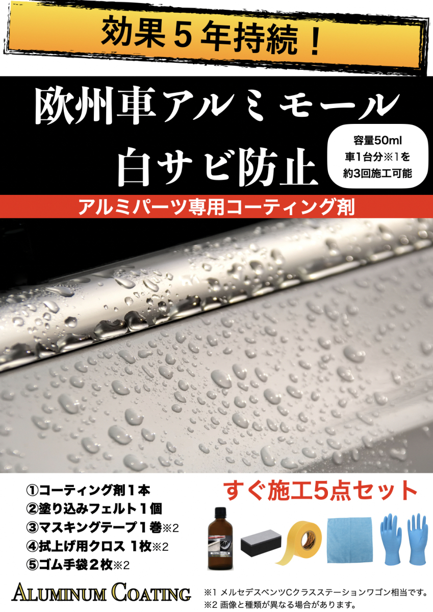 欧州車 アルミモール 白サビ防止 ガラスコーティング 効果5年持続 耐候 耐キズ Aluminum Coating