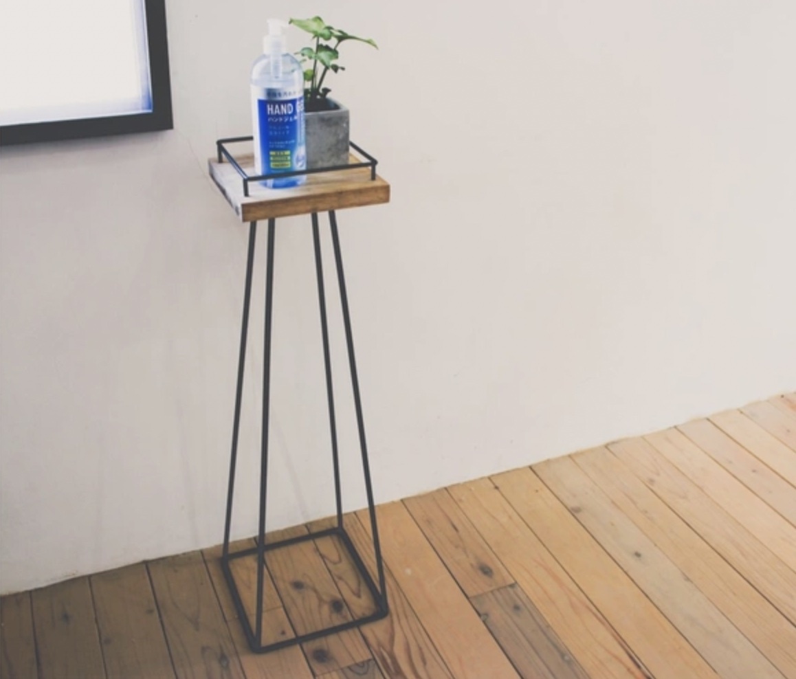 天然木 アルコール消毒スタンド アイアン脚 台 手指消毒 コロナ対策 除菌 スタンド スタイリッシュデザイン 観葉植物 キャンプ