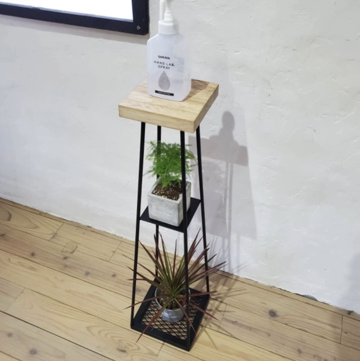 天然木 アルコール消毒スタンド アイアン脚 台 手指消毒 コロナ対策 除菌 スタンド スタイリッシュデザイン 観葉植物 キャンプ