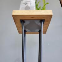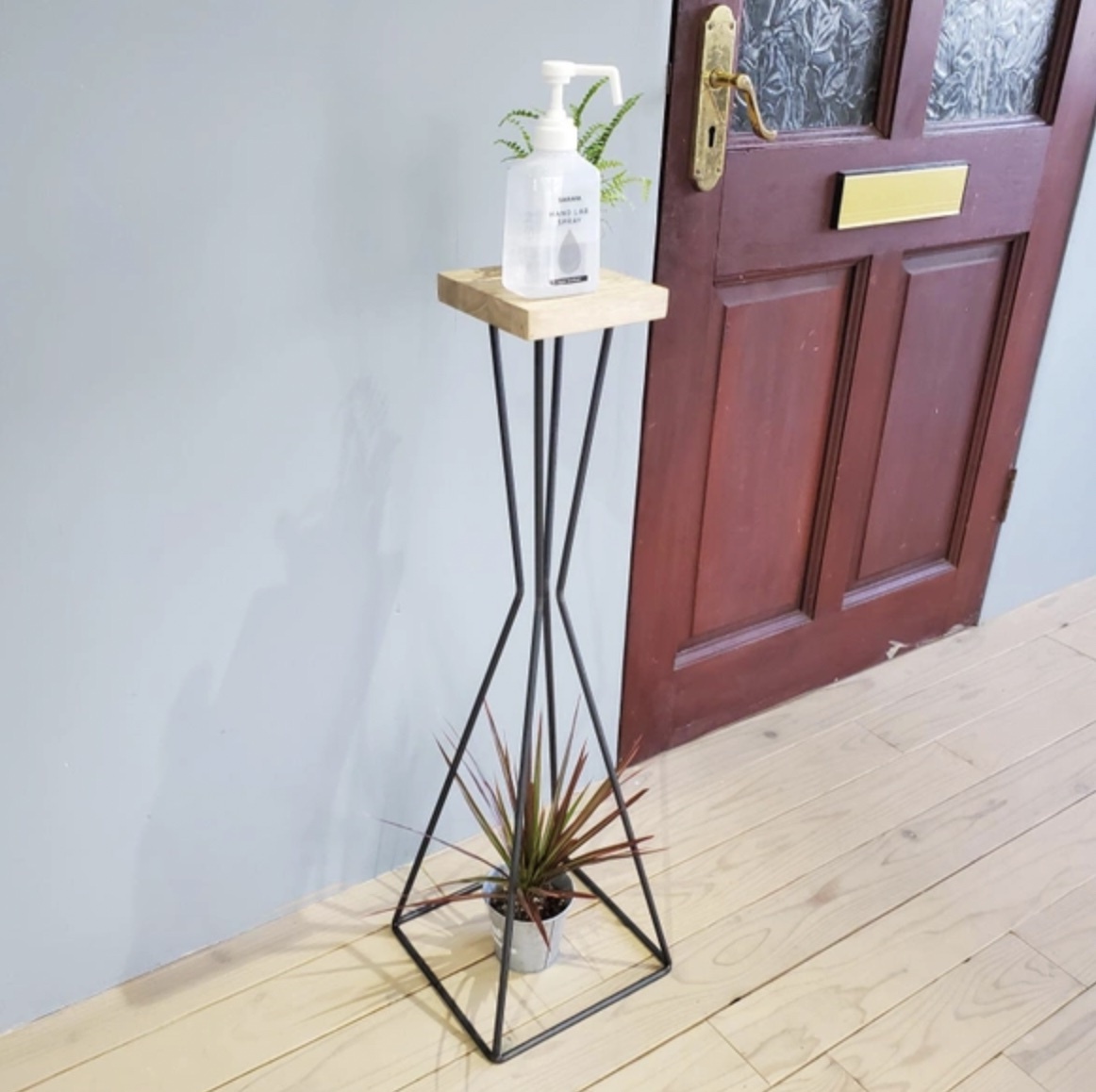 アイアンに丸みをつけたフォルムと、天板に向いてクビレラインを施したデザイン性の高いアルコールスタンドです。 天板には高級天然木のラバーウッドを使用しています。