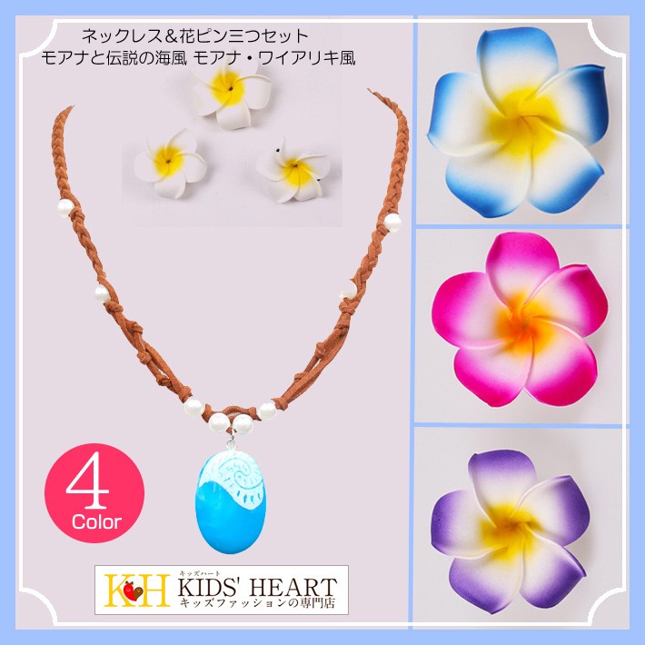 ネックレス&花ピン三つセット モアナと伝説の海風 モアナ・ワイアリキ風 子供 コスチューム 演劇 発表会 メール便送料無料 売れ筋 新商品