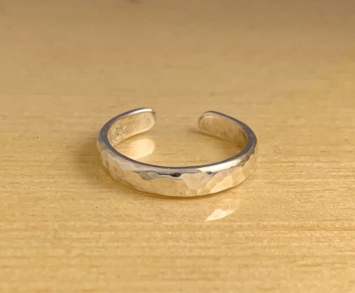 甲丸タイプの表面に、鎚目をつけたトゥリングです。