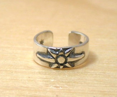 浮き彫りの太陽が抜群の存在感のあるトゥリングです。