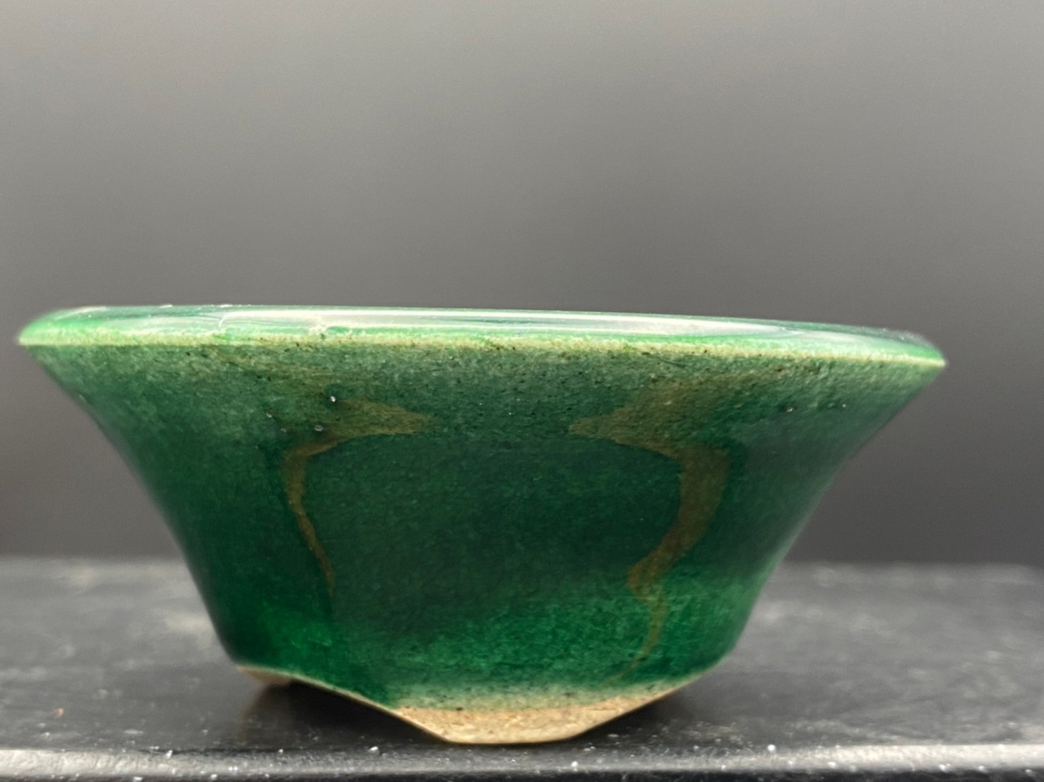 堀江美功 緑釉丸陣笠三足鉢 2.5号(7cm)