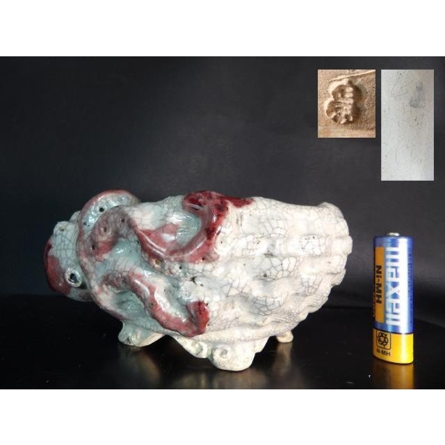 古本正志 白貫入辰砂流釉籠彫蛸付雲足鉢 3号