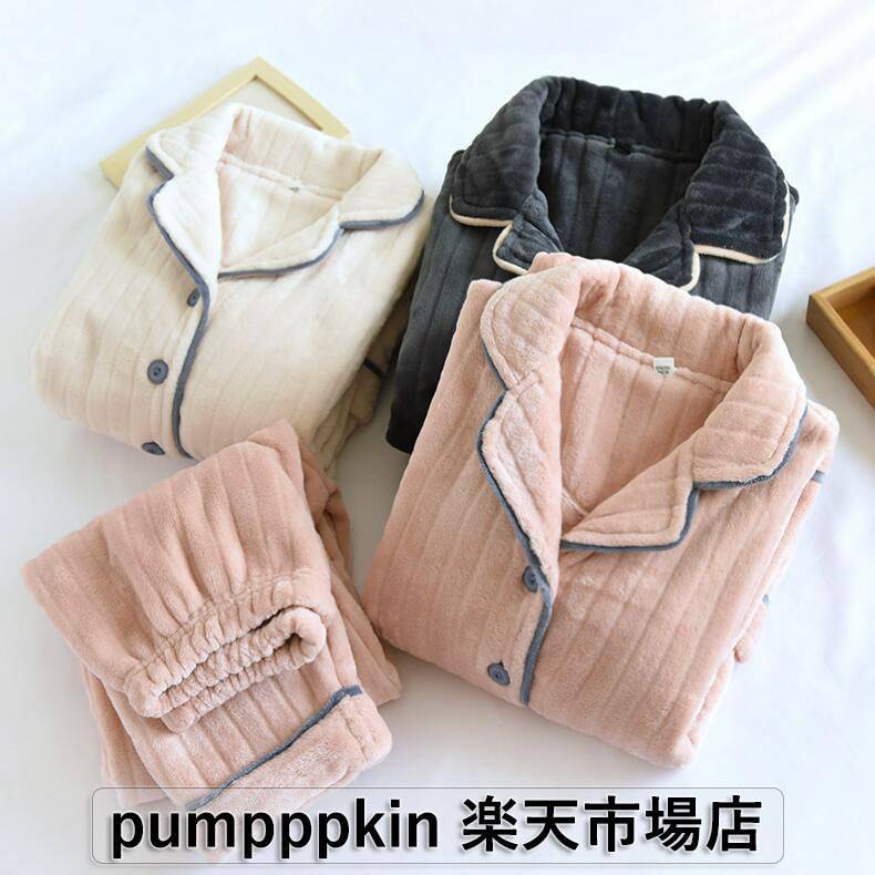 パジャマ レディース メンズ 秋冬 厚手 部屋着 前開き ルームウェア ストライプ柄 もこもこ 起毛パジャマ 上下2点セットアップ あったかい 長袖 コーラルフリース フランネル パジャマ ナイトウェア 裏起毛 寝間着 モコモコ 冬物 ピンク ベージュ グレー M L XL