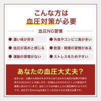 | 注意事項 | ◆降圧薬を服用している方は、医師・薬剤師に相談してください。◆過剰摂取を避け、1日の目安量をお守りください。◆妊娠、授乳中の方、乳幼児及び小児は摂取をお控えください。◆水濡れや汚れのつかない衛生的な環境でお取り扱いください。 |