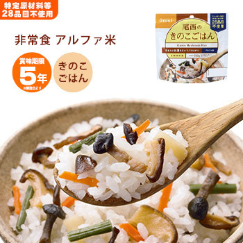 非常食 アルファ米 きのこごはん 100g 尾西食品 スタンドパック アルファ化米 きのこご飯 5年保存 保存食 [M便 1/4]