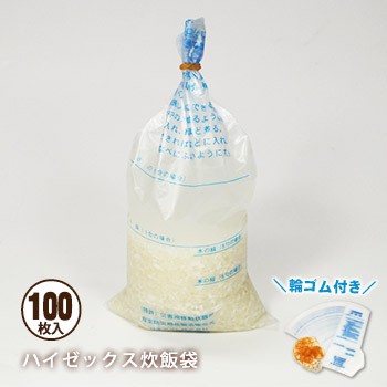 魔法の米炊き袋 ハイゼックス炊飯袋100枚入 輪ゴム付き 災害救助用炊飯袋 防災グッズ [M便 1/4]