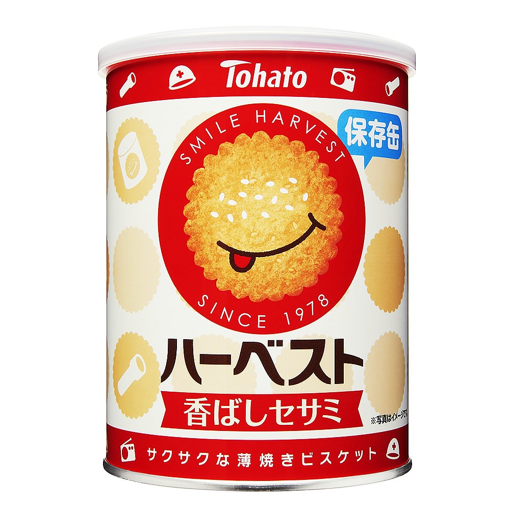 東ハト ハーベスト 香ばしセサミ 保存缶 5年 88g(4枚×8包入)サクサクな薄焼きビスケットで有名なハーベスト セサミ味が、5年の長期保存缶になりました。