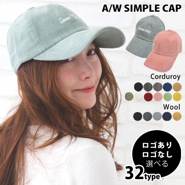 キャップ レディース メンズ コーデュロイ ウール 無地 ロゴ 帽子