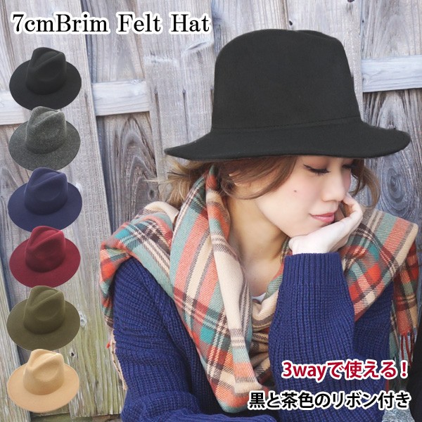 中折れハット つば広 レディース メンズ フェルト 帽子