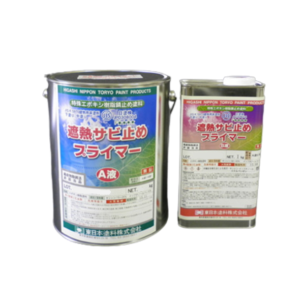 東日本塗料の遮熱サビ止めプライマーは、防錆力が高く、かつ、安全性を持つ防錆顔料を配合した遮熱効果のある2液タイプ特殊エポキシ樹脂の金属用サビ止めプライマーです。