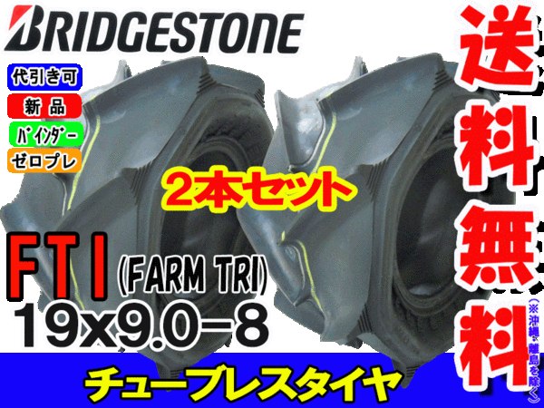 FTI 19X9.0-8 T/L 2本セット チューブレス ゼロプレタイヤ収穫機用 バインダー FARM TRI 19x90-8