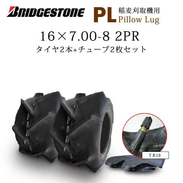 ブリヂストン Pillow Lug PL 16x7.00-8 タイヤ2本+ チューブTR13 2枚セット 収穫機用 バインダー用 16X7.00-8 2PR T/T