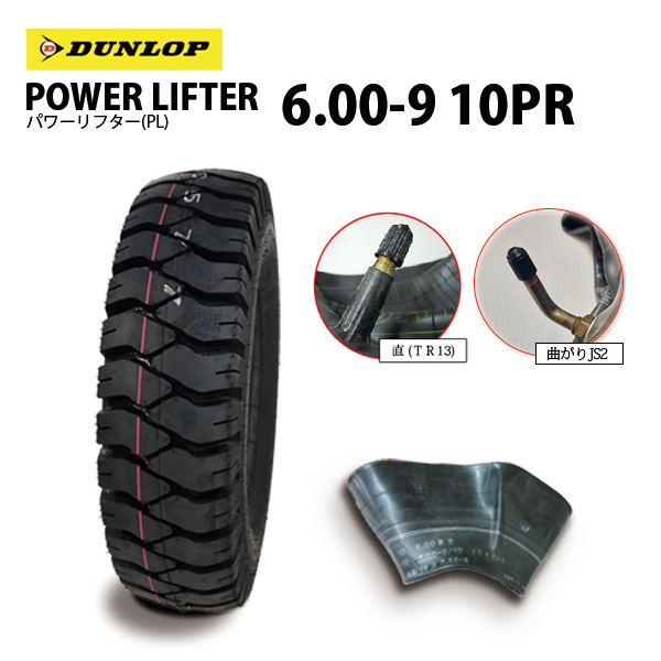 ダンロップ PL 6.00-9 10PR タイヤ1本+チューブ1枚 POWER LIFTER ( パワーリフター ) トレーラー、フォークリフト用