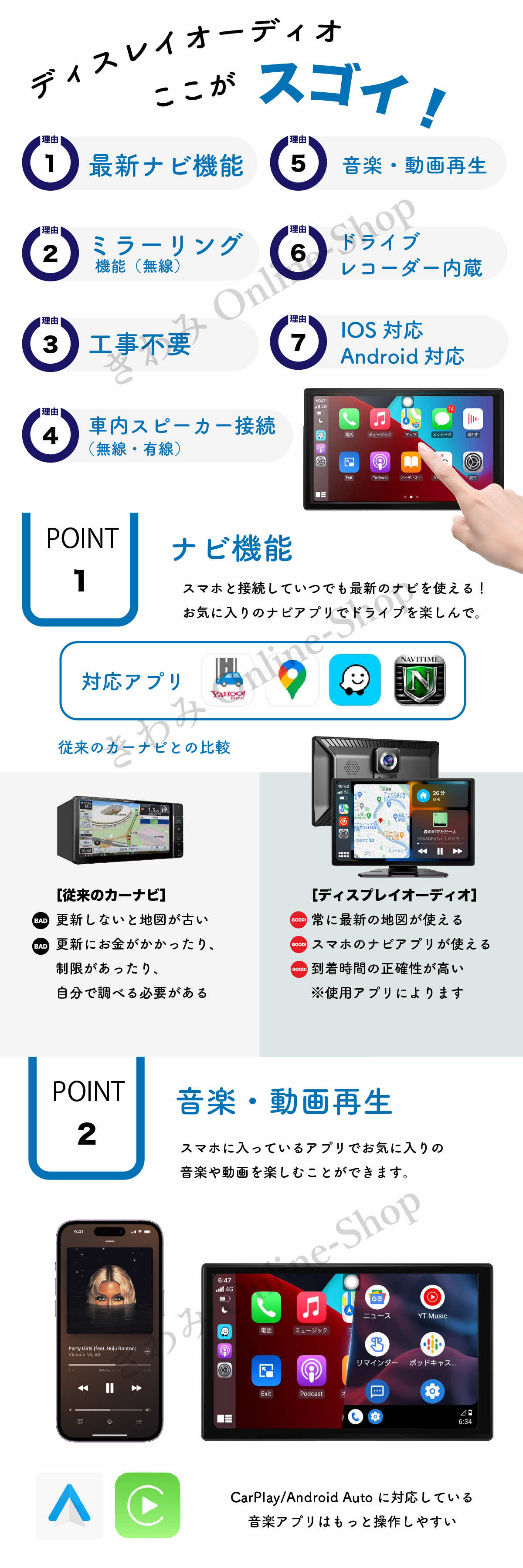 (音楽配信アプリ や 動画配信アプリは「Android Auto」&「Apple CarPlay」に対応しているアプリに限ります)