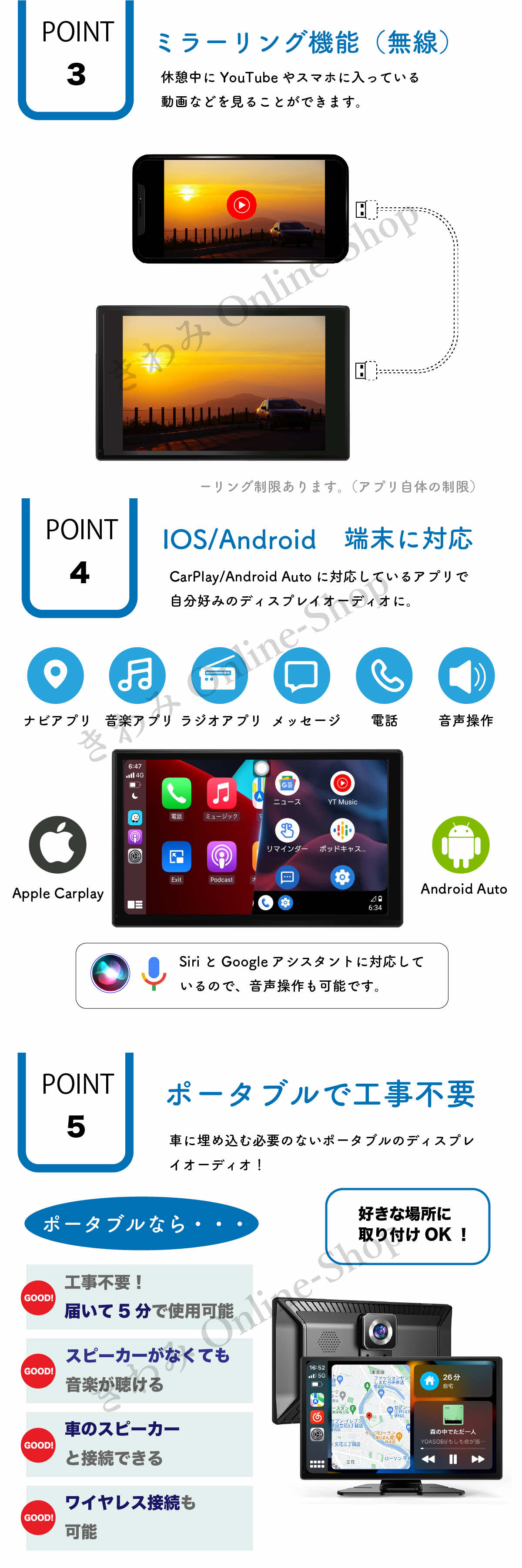 ・スマートフォン等接続された場合、ストリーミングで音楽や動画を再生するといった通信は、スマートフォンの通信料が発生いたします為、ご注意ください。