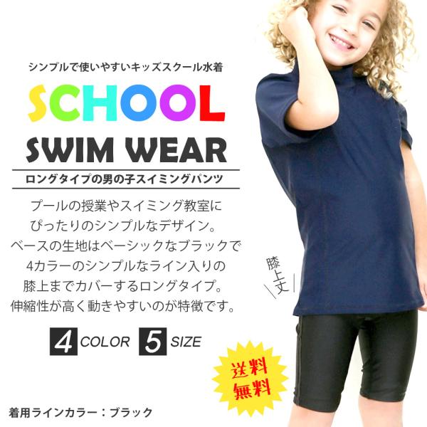 男の子 スクール水着 黒 パンツ ライン 裏地付き ロングタイプ 水着 小学生 スク水 子供 学校120 130 140 150 160 学校 競泳 水泳 男子 スイミング 裏地 水遊び
