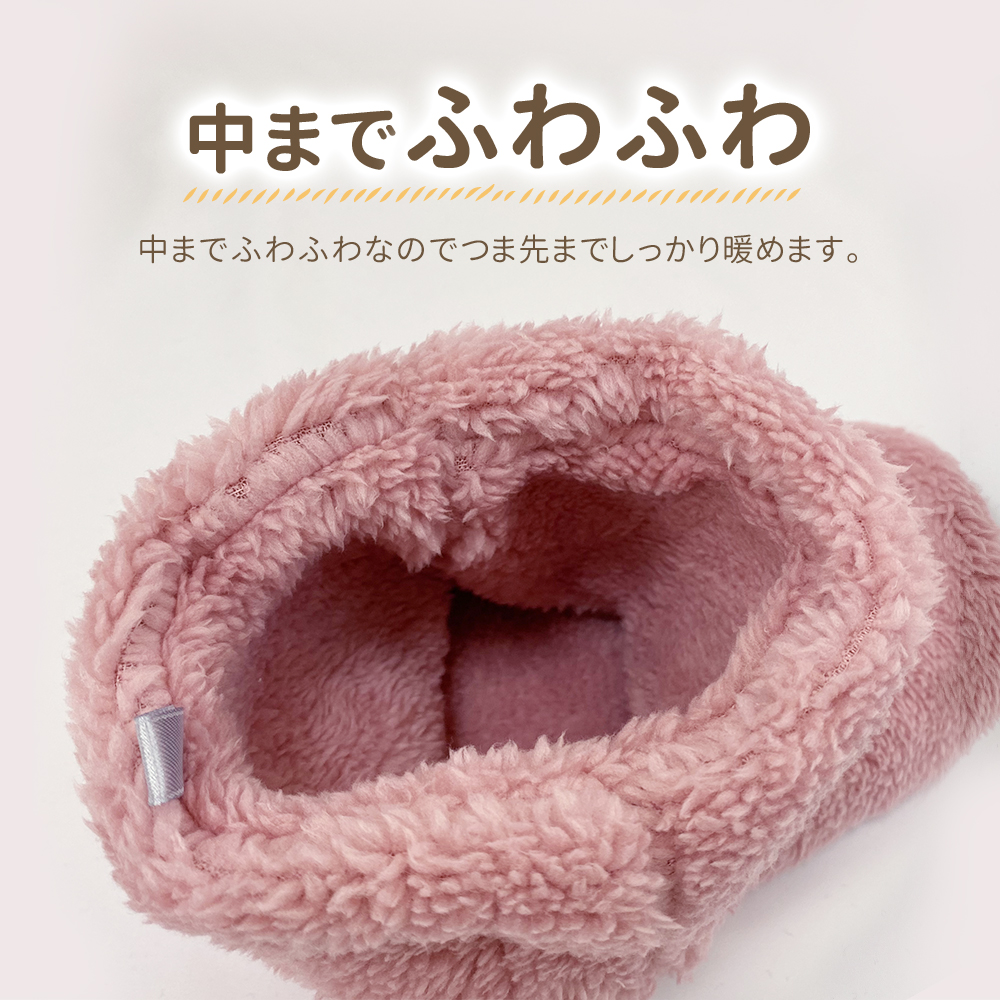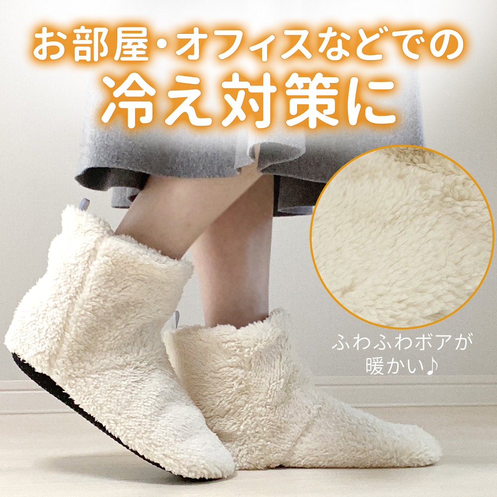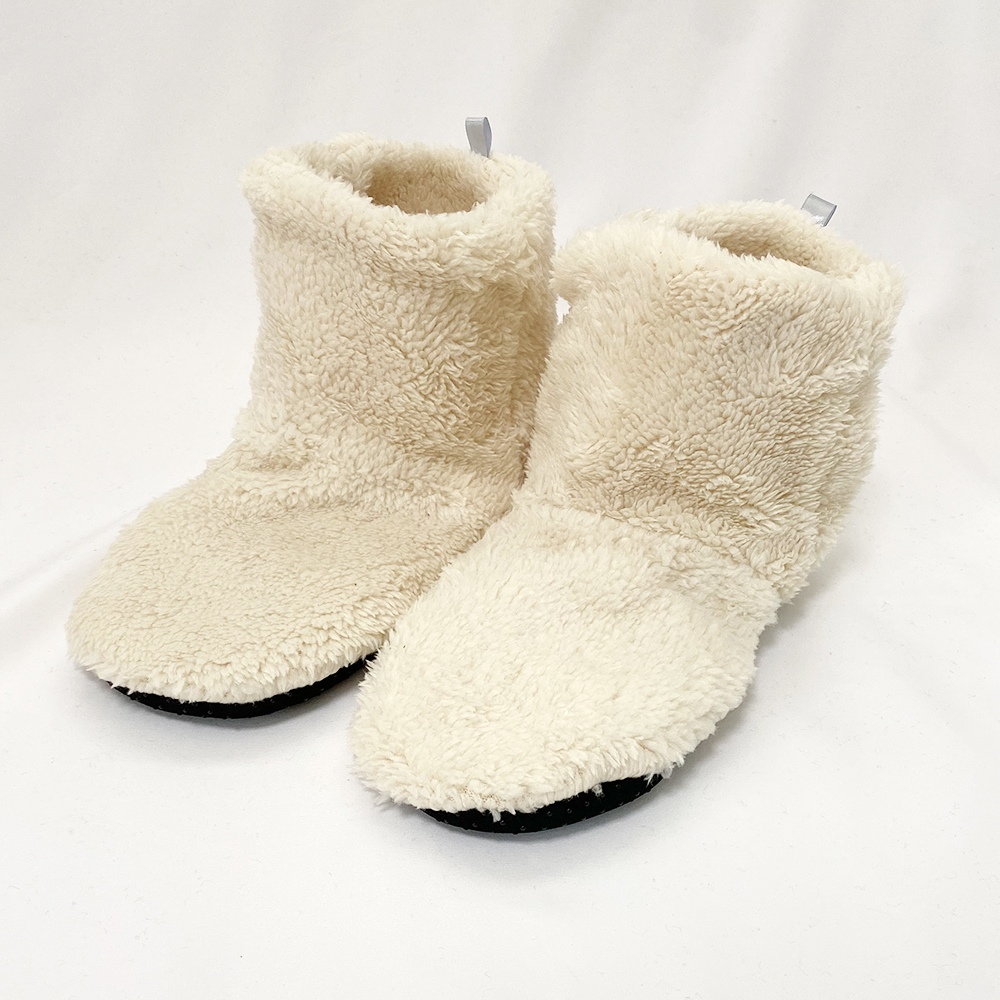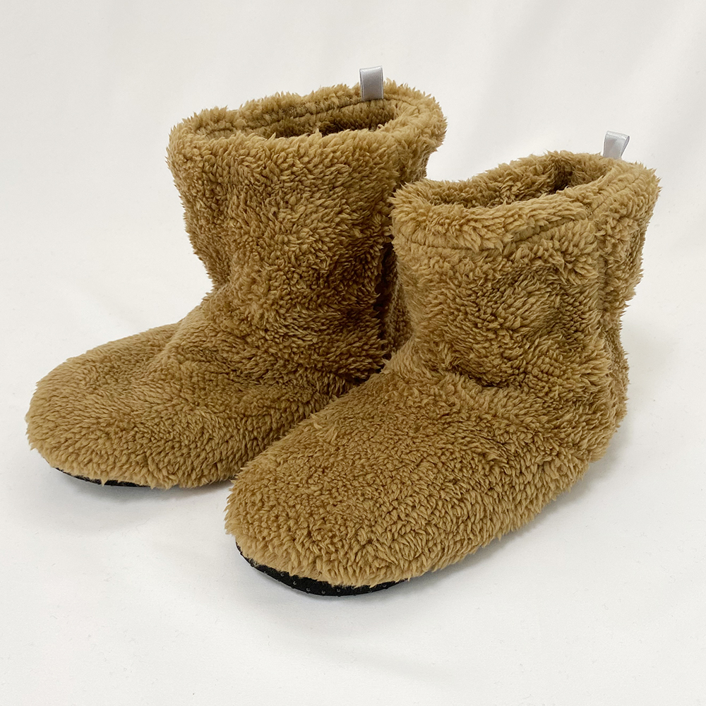 〇足元から来る冷えから対策できるボア素材のルームシューズです。全体がもこもこしているので暖かく、裏はゴムの滑り止めもついているので安心!フリーサイズなので簡単にすっぽり履けます。