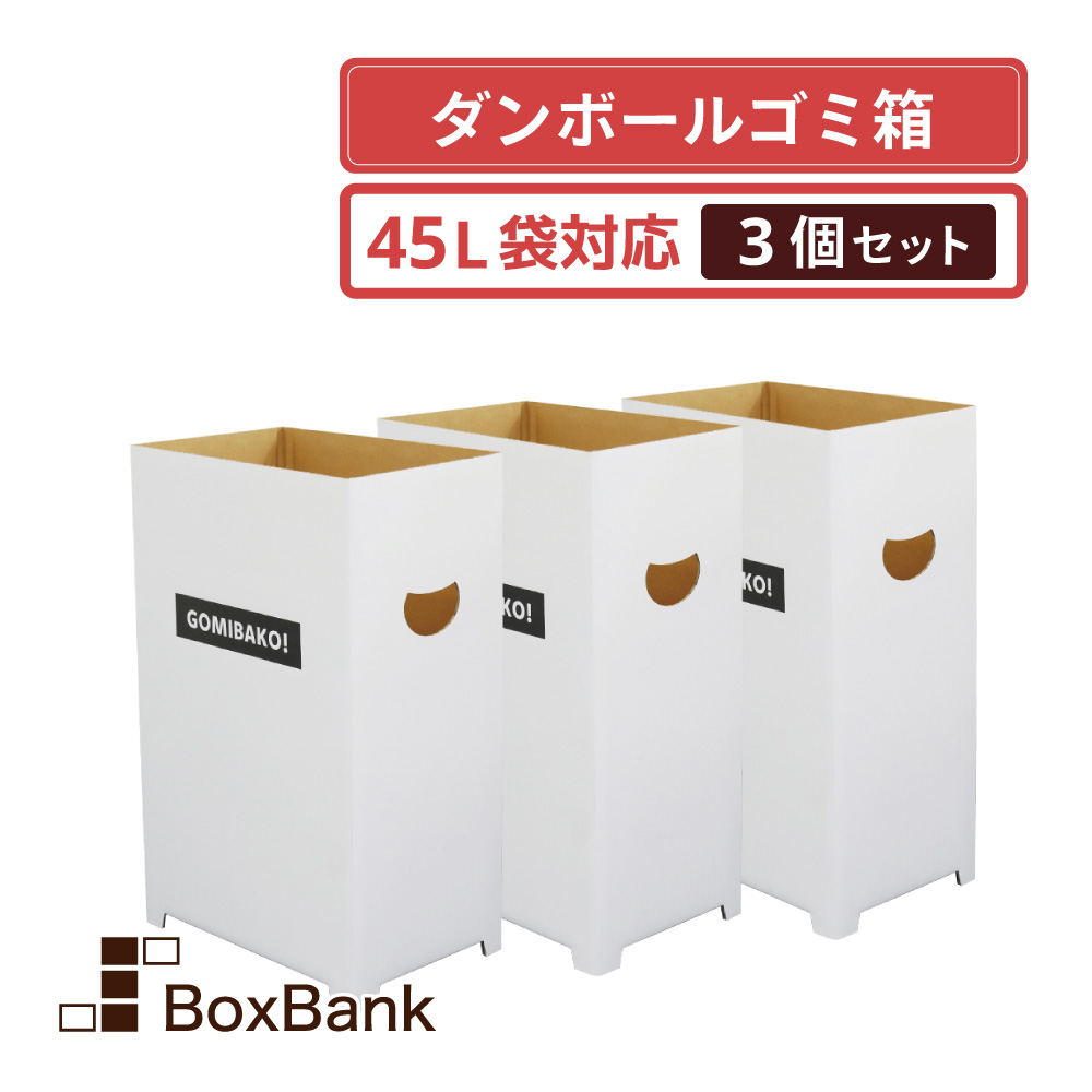 ダンボール ゴミ箱 白 45リットル袋対応(345×230×545mm)3個セット 段ボール ごみ箱 ダストボックス 使い捨て 屋外