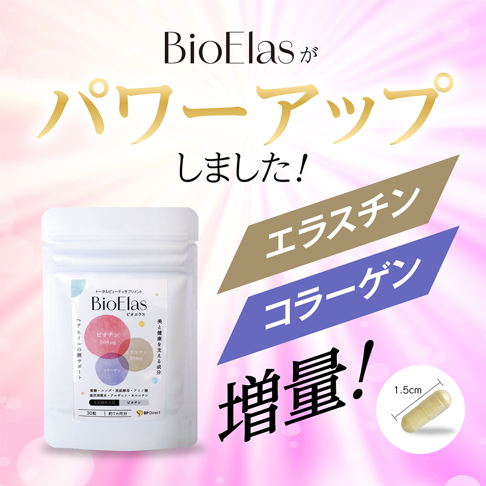 ビオチン エラスチン サプリ ビオエラス 30粒 栄養機能食品 コラーゲン エイジングケア ビタミンB7 爪 肌 髪 白髪 美肌 美容 サプリメント 補修 保湿 日本製