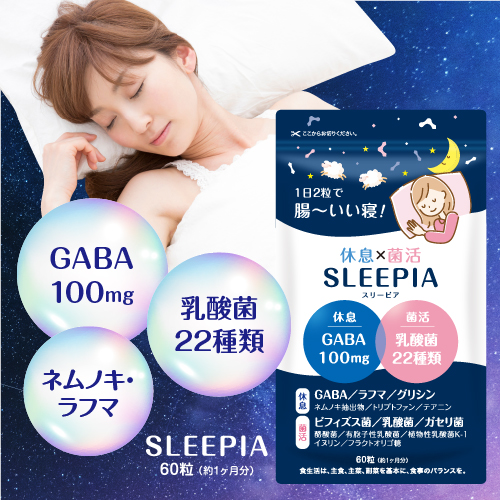 睡眠 サプリ スリーピア 60粒 30日分 ギャバ テアニン グリシン トリプトファン 乳酸菌 不眠 快眠 ストレス