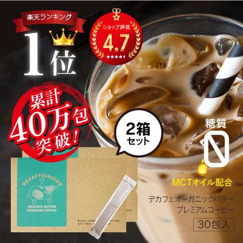 1包当60円!バターコーヒー インスタント mctオイル デカフェオーガニックバタープレミアムコーヒー 30包 2箱セット ダイエットコーヒー