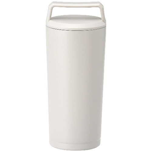 ハンドル付きで持ち運びやすいタンブラー。真空断熱構造で、保温、保冷に対応。95℃の場合:保温効力/53℃以上(6時間)4℃の場合:保冷効力/13℃以下(6時間)