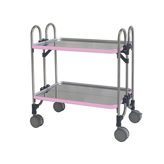 ●コンパクトな折りたたみカートです。●サイズ(mm):763×505×838●段数:2段●重量(kg):15●色:ピンク●材質:ステンレス●キャスター:Φ100mmナイロンエラストマー製(対角ストッパー付き)●折りたたみ時寸法:(幅)763×(奥行)200×(高さ)940mm●耐荷重:30kg/段●足パイプ径:Φ19mm●タグ:院内運搬機器