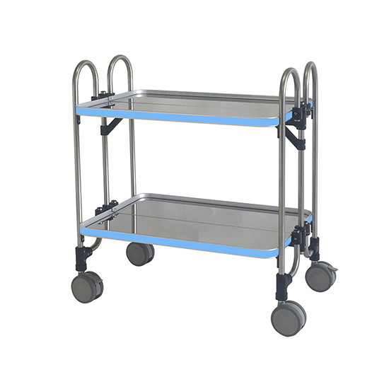 ●コンパクトな折りたたみカートです。●サイズ(mm):763×505×838●段数:2段●重量(kg):15●色:ブルー●材質:ステンレス●キャスター:Φ100mmナイロンエラストマー製(対角ストッパー付き)●折りたたみ時寸法:(幅)763×(奥行)200×(高さ)940mm●耐荷重:30kg/段●足パイプ径:Φ19mm●タグ:院内運搬機器