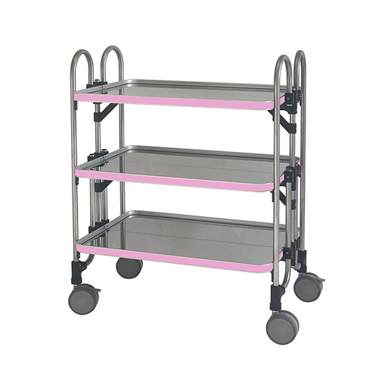 ●コンパクトな折りたたみカートです。●サイズ(mm):763×505×958●段数:3段●重量(kg):21●色:ピンク●材質:ステンレス●キャスター:Φ100mmナイロンエラストマー製(対角ストッパー付き)●折りたたみ時寸法:(幅)763×(奥行)200×(高さ)1060mm●耐荷重:30kg/段●足パイプ径:Φ19mm●タグ:院内運搬機器